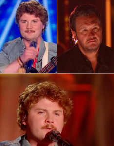 Brooks Rosser was among those who secured a place in the Top 14 and took the stage with an acoustic guitar to perform “Imagine,” a song originally associated with John Lennon. The performance relied on a stripped-down arrangement, allowing his voice and interpretation to take center stage.