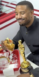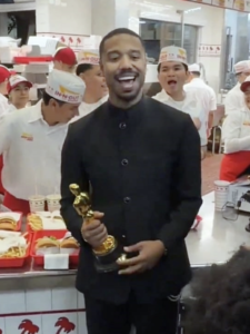 After receiving one of the most prestigious awards in the film industry, Michael B. Jordan opted for a low-key celebration. He visited an In-N-Out Burger location, where he was spotted holding his Oscar statuette while interacting with fans.