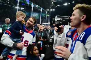 Moments after the final whistle, in a deeply poignant gesture, Team USA players invited Johnny Gaudreau’s children onto the ice to take part in the celebration with their medals and teammates.